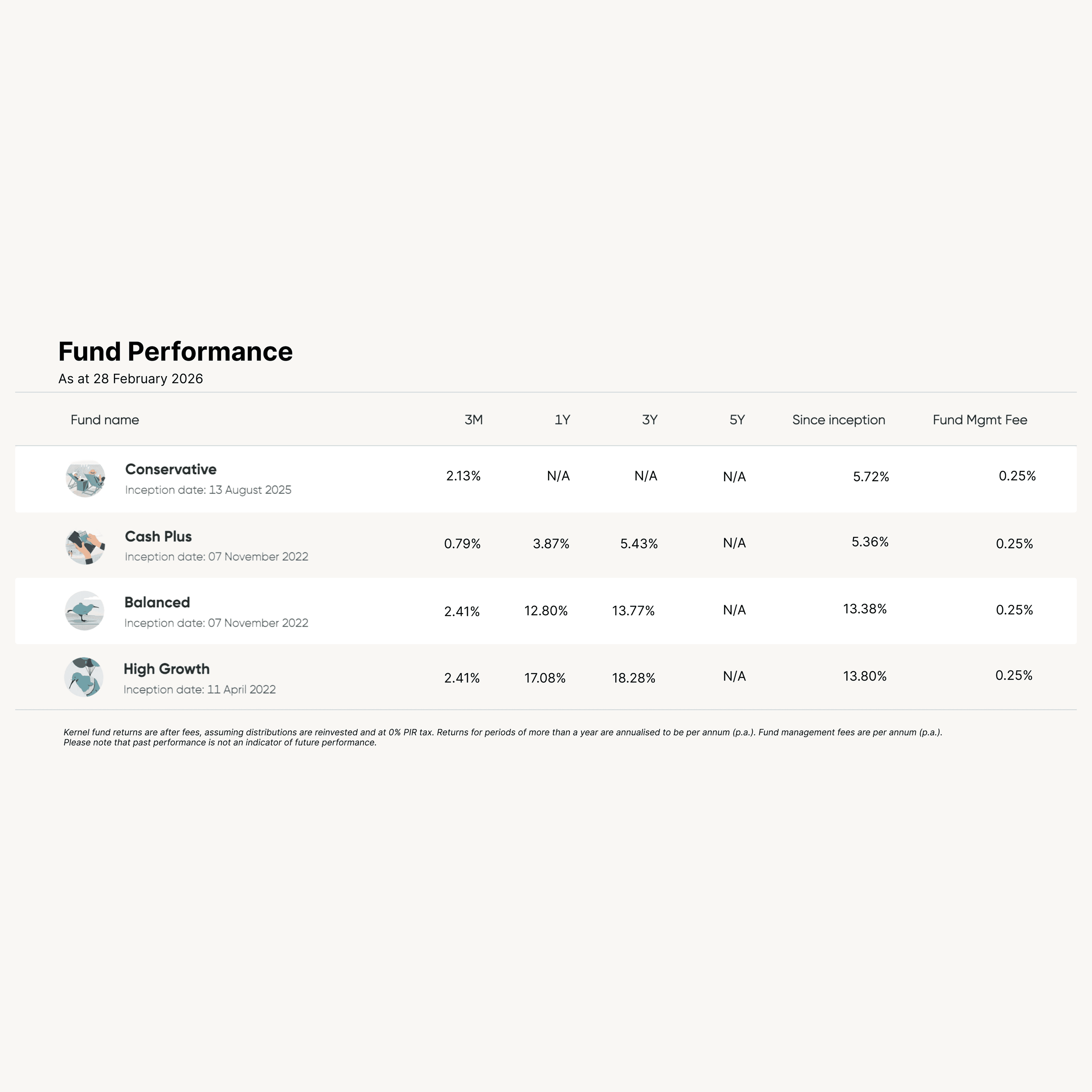 Switch to the Kernel KiwiSaver Plan now Fund Performance