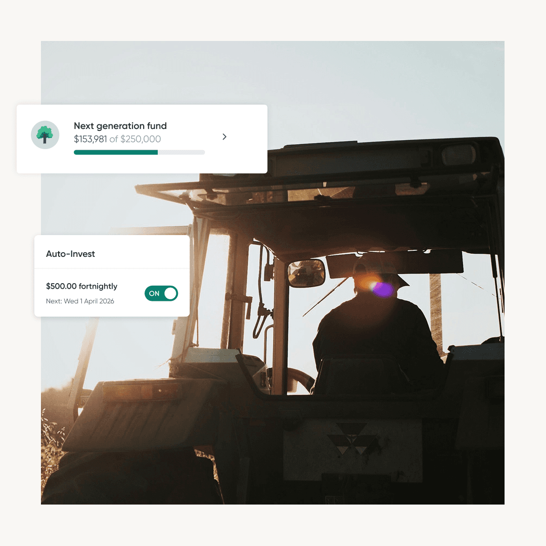 Kernel gives rural families a simple way to build investments outside the farm gate. Set up automatic contributions into diversified index funds and grow a nest egg that supports retirement, succession, and life beyond the cowshed.